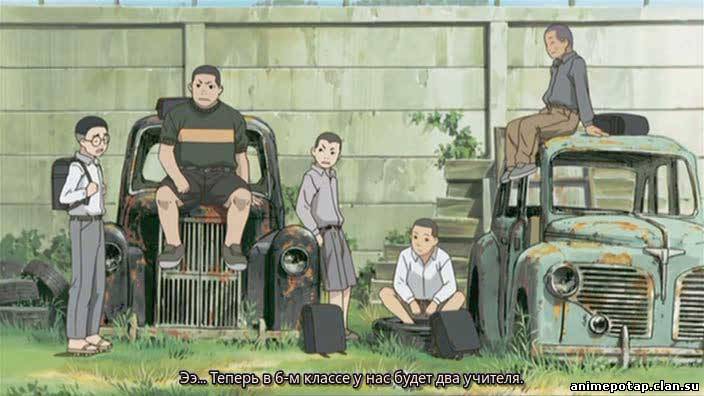 .......................................................... Описание: "Furusato Japan" - победитель в номинации «Лучший детский фильм» и «Лучший анимационный фильм» на фестивале азиатских фильмов в Лионе в2006 г. 1956 г. Япония оправляется после Второй мировой войны. В домах появляются первые телевизоры и телефоны. Акира Янагисава, перенёк из бедной семьи, ходит в обычную школу. В начале учебного года в их класс приходят новая девочка красавица Шицу Миянага и новая учительница Рико Сакамото. Учитель Сакамото в числе других учеников выбирает Шицу и Акиру в школьный хор, который готовится к городскому конкурсу школьных музыкальных коллективов. Однако Акиру с друзьями поймали на мелком воровстве, за этим следует ещё одно трагическое событие, и участие ребят в состязании становится под большим вопросом ... Потрясающее, необычайно доброе аниме с великолепной рисовкой и замечтательным саундтреком.